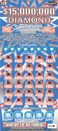 $15MM DIAMOND SPECTACULAR is a $30 scratchers from the California Lottery with overall odds of 1 in 3.