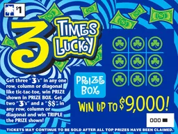 3 Times Lucky(#1571) is a $1 scratchers from the California Lottery with overall odds of 1 in 5.